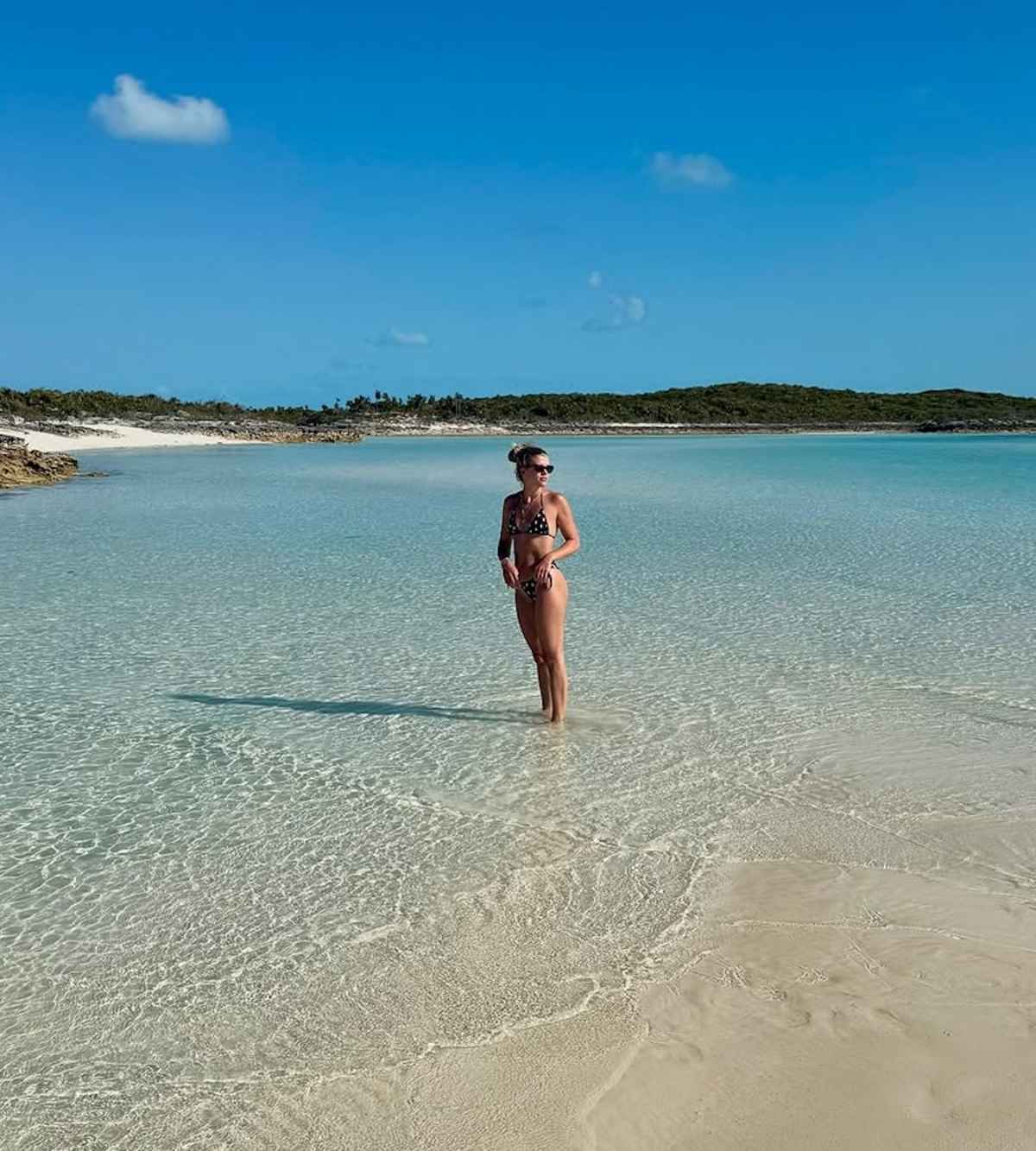 As for Sofia, she kicked off the carousel with a solo shot of herself in the surf. She sizzled in a polka-dot two-piece, Ray-Ban Bio-Based sunglasses and a tangle of gold necklaces, including a delicate diamond-encrusted chain by celeb-favorite jeweler Martin Katz bearing Eloise’s name.