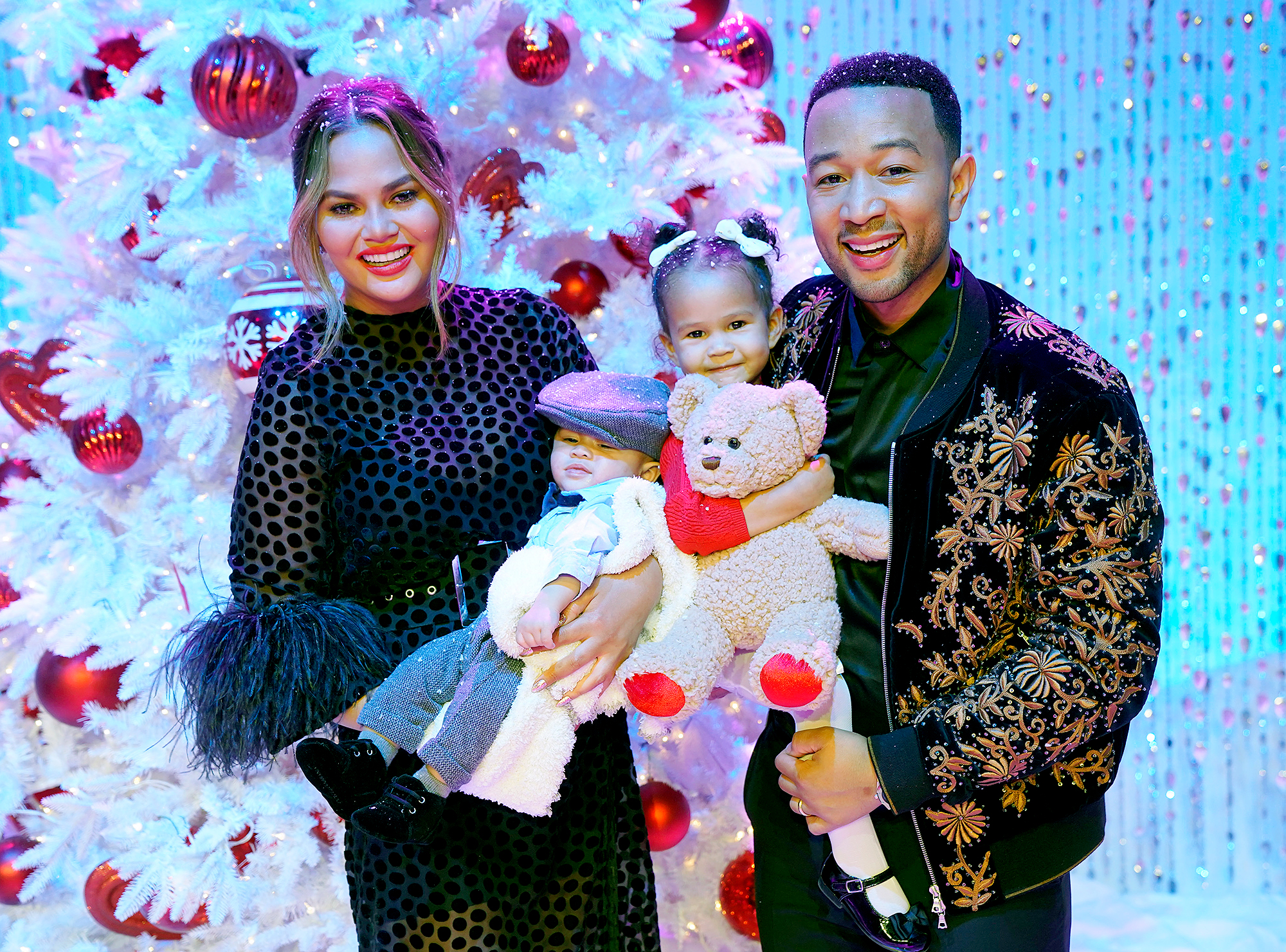 “Isn’t it so beautiful?” the Lip Sync Battle cohost, 33, asked. Her 8-month-old son stood on the couch with his grandma in a blue onesie, his hair combed to one side in a look Legend, 40, referred to as “the slick-back.” Luna kept staring at her baby brother, sporting a purple princess dress and curls herself.