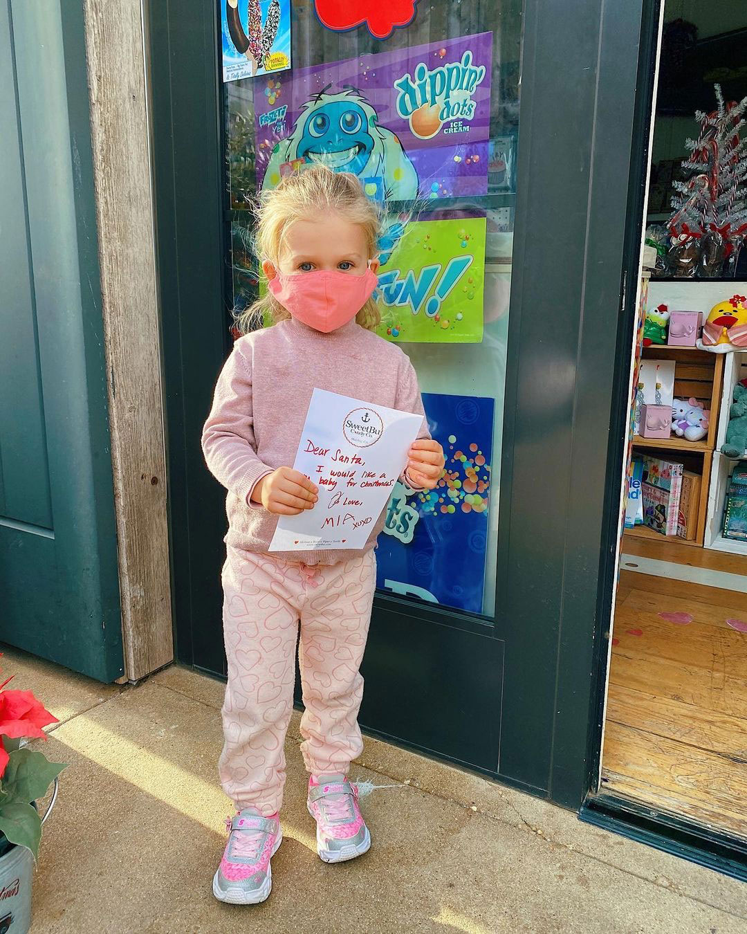 “Dear Santa, I would like a baby for Christmas. Love, Mia,” the handwritten message read in red ink. “XOXO.”