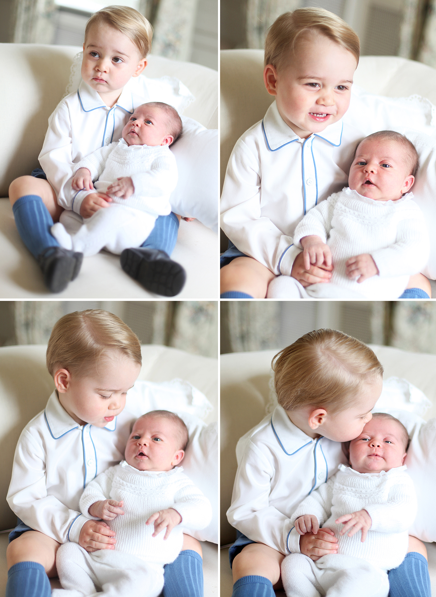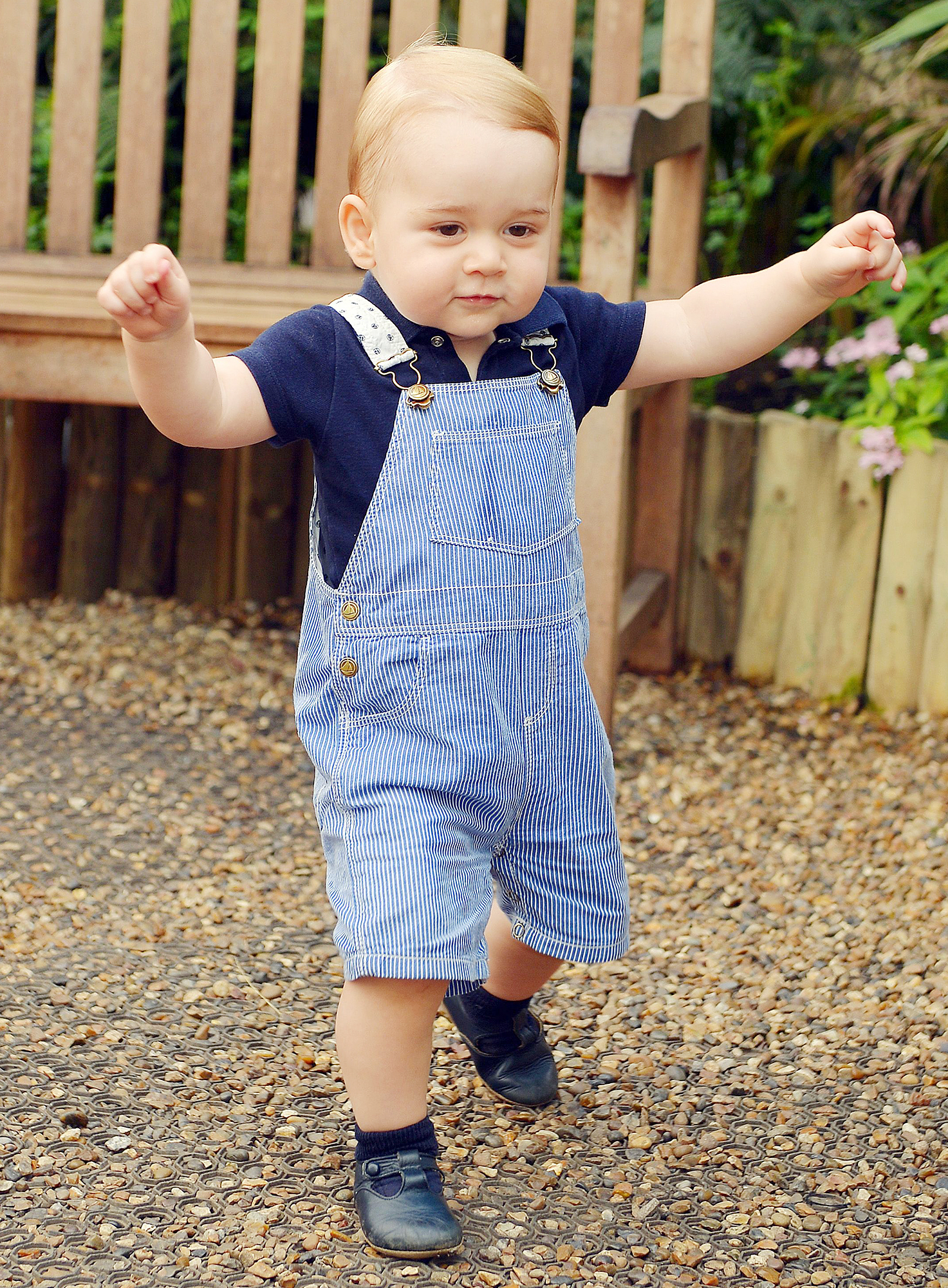 The sweet tradition began when their eldest son, Prince George, celebrated his first year in July 2014. The little one walked in the photo taken by John Stillwell, looking all grown up in Petit Bateau denim overalls, a navy polo shirt and matching leather shoes.