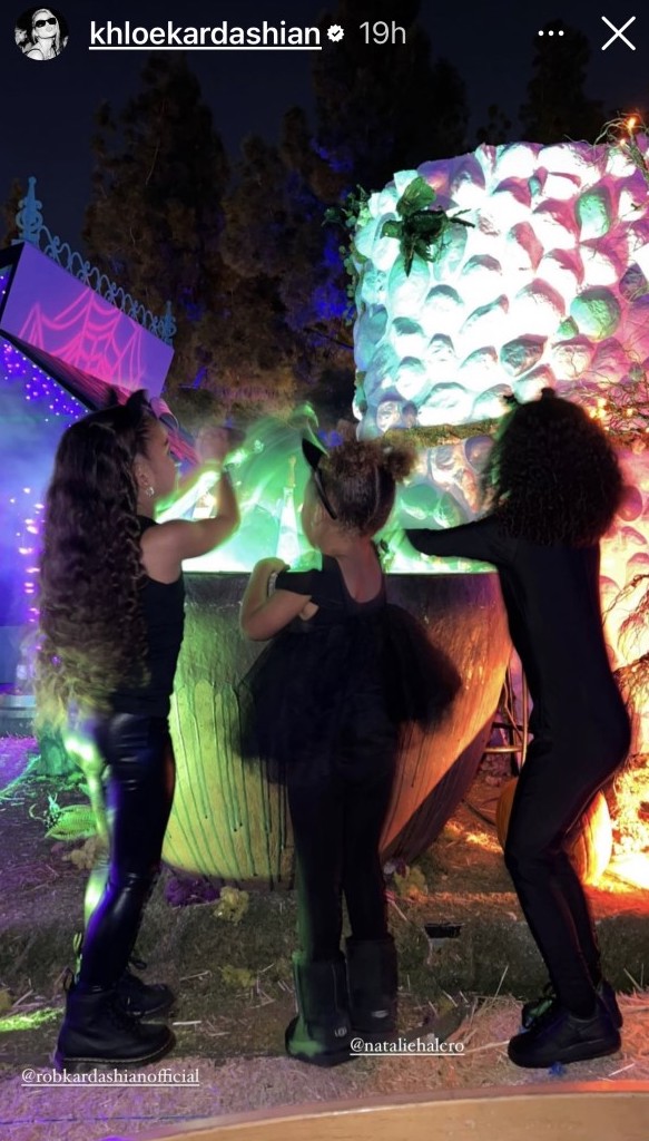 Khloé also included videos of the little ones dancing around in front of a circus performer on giant stilts as they giggled. During the family’s spooky night out, the trio walked through a tunnel made of jack-o-lanterns and posed in front of creepy graveyard decorations.