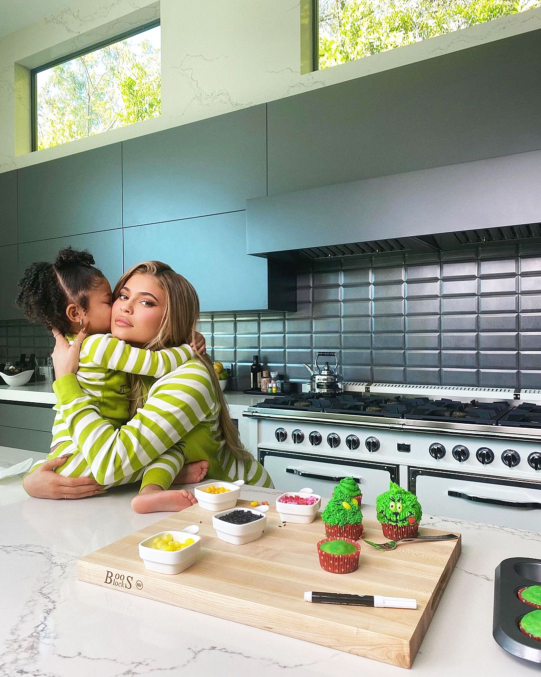 The little one and her mom also celebrated the collection’s launch on Thursday by wearing green and white-striped pajamas and making Grinch cupcakes. Stormi continued to compliment her mom, gushing about how “beautiful” the makeup mogul is.