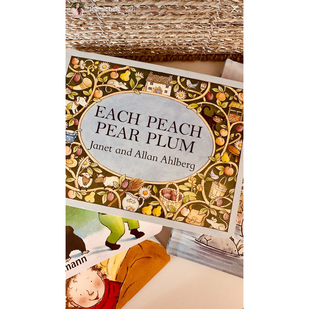 The actress gave a glimpse of the 2-week-old’s crib, framed horse picture and lamp on her Instagram Story. She also photographed a stack of books, topped with Janet and Allan Ahlberg’s Each Peach Pear Plum, as well as a photo of the infant’s foot on a blanket.