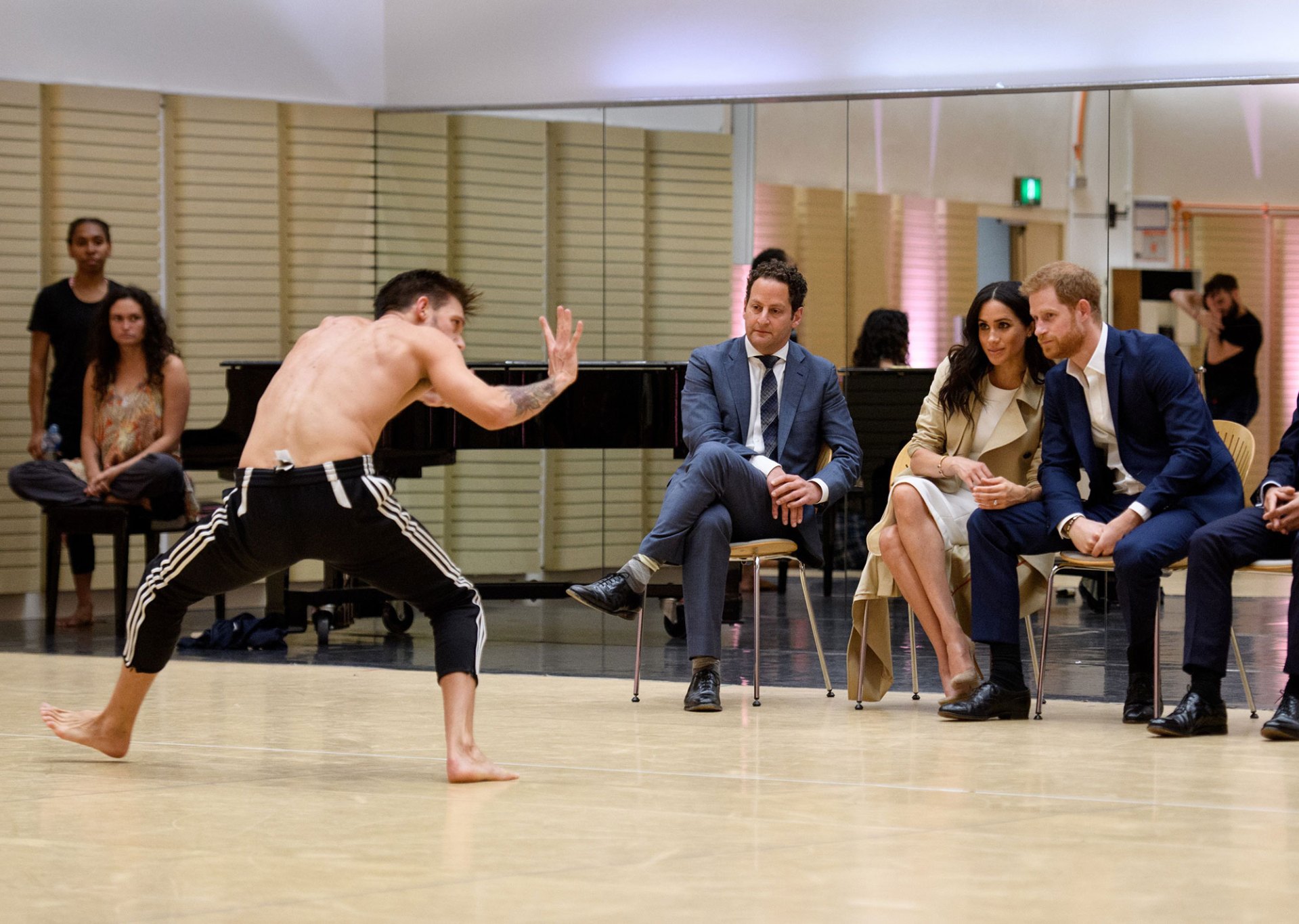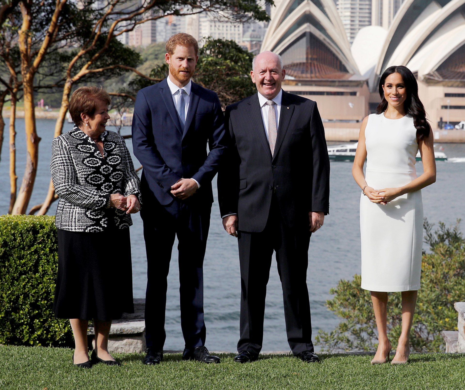 Meghan, 37, stunned in a white sleeveless dress by Karen Gee, while Harry sported a sleek suit during their trip to the Admiralty House with Australia’s Governor General Peter Cosgrove and his wife, Lady Lynne Cosgrove.