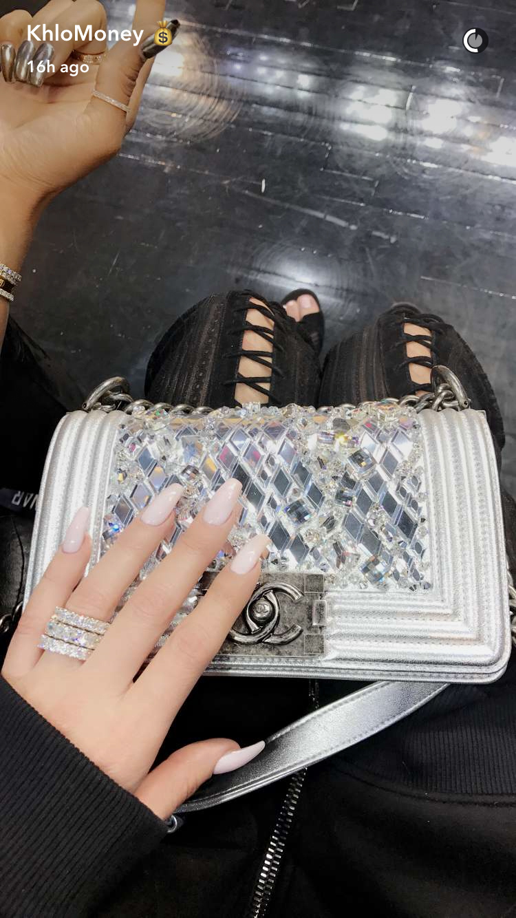 The 32-year-old reality star supported the Cleveland Cavaliers player, 26, at his game against the Los Angeles Clippers at Staples Center. Kardashian wore an oversize black Givenchy hoodie as a dress, which she paired with thigh-high Gianvito Rossi boots and a silver Chanel bag. Kardashian sat courtside with her BFF, Malika Haqq, and the pair were seen chatting and laughing.