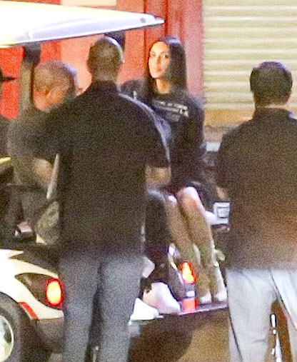 The reality star, 36, was spotted at the rapper’s show at the Forum in Los Angeles on Tuesday, October 25. She was photographed riding on the back of a golf cart backstage with West, 39. Kardashian and West, who coordinated in all-black outfits with white shoes, were also seen walking around with a camera crew.