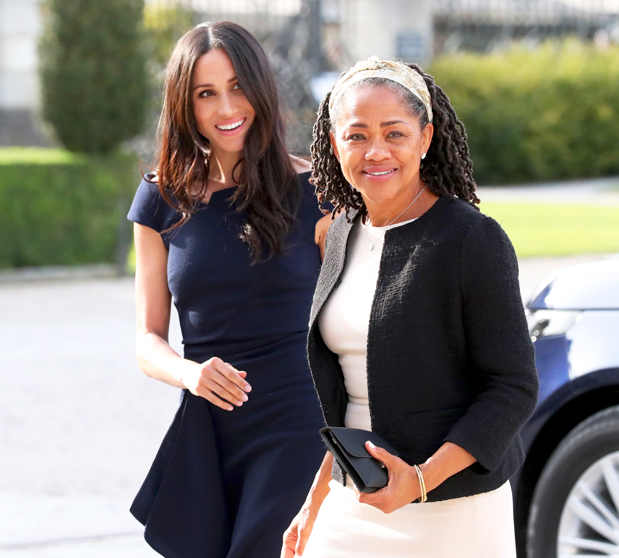 On the morning of the big day, Ragland rode with Meghan (née Markle) in a vintage car on their way to St George’s Chapel in Windsor Castle. The proud mom wore a Wedgewood green wool crepe dress and coat ensemble by Oscar de la Renta, while the bride donned an elegant gown by Clare Waight Keller for Givenchy.