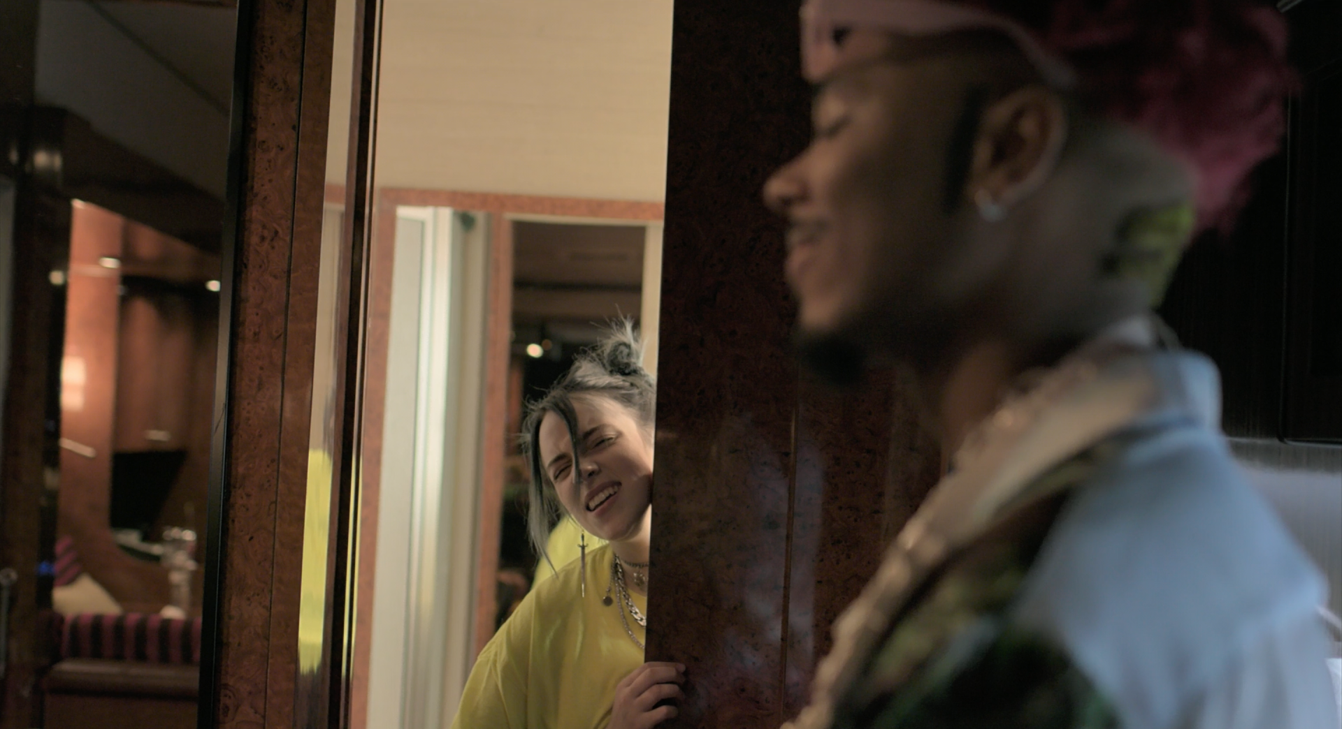At one point, ahead of the March 2019 release of her debut album, When We All Fall Asleep, Where Do We Go?, Eilish giddily tells her then-boyfriend over the phone, “I love you. I’m in love with you.” But after he admits to drunk driving only days later, she scolds him, “I don’t want you to do that. I feel like you don’t take me seriously when I say that. I just want you safe.”