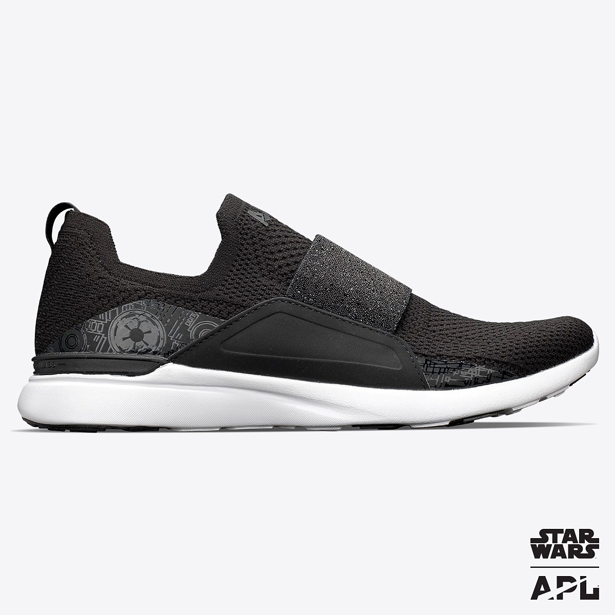 APL’s TechLoom Bliss sneaker has an out-of-this-world new look featuring Star Wars-themed details and a Swarovski crystal strap. $350, athleticpropulsionlabs.com)