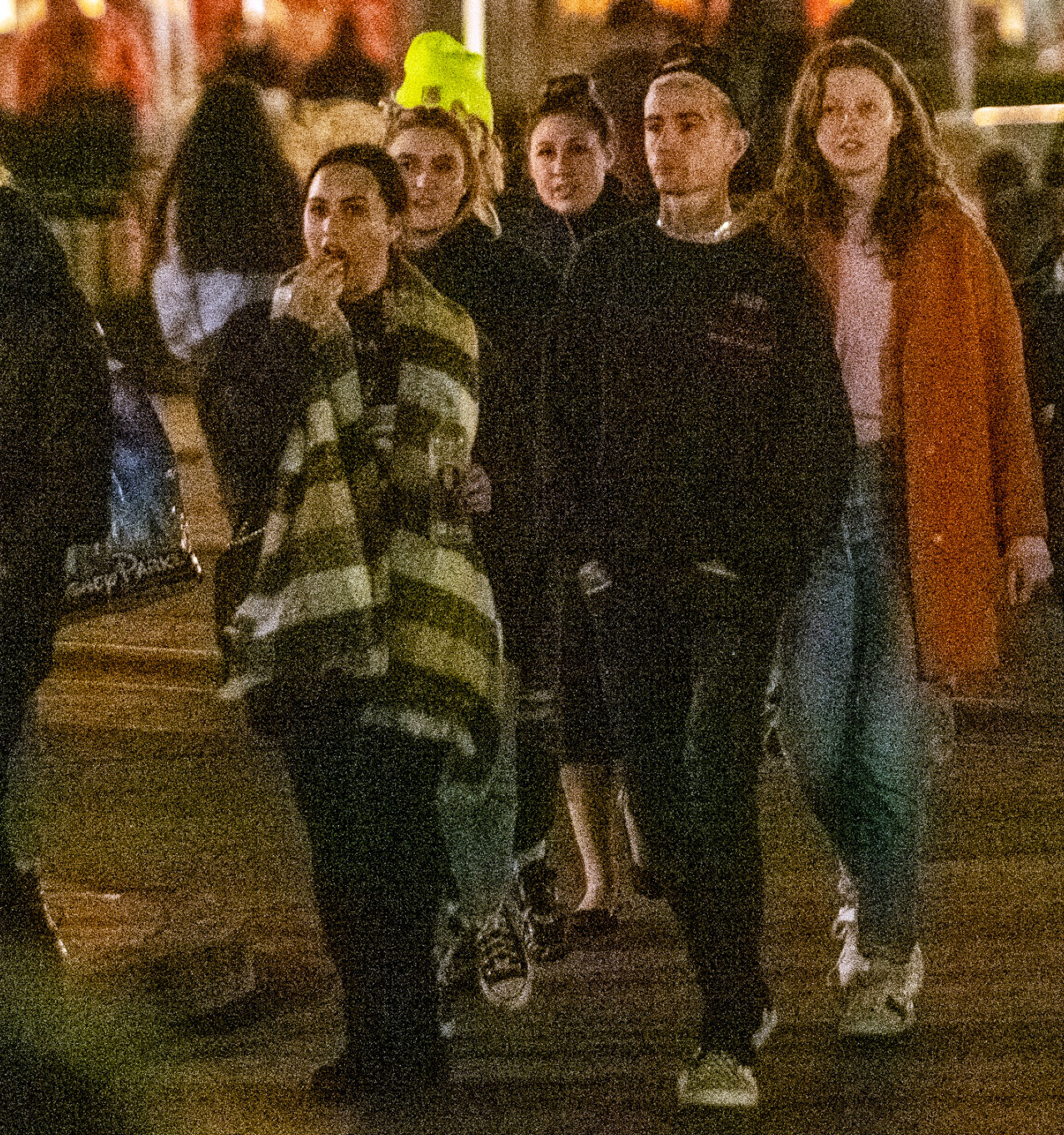 Lovato, 27, wore a black hoodie inscribed with the words “Love Will Tear Us Apart” along with a large striped scarf, while Wilson, 25, was dressed in a navy T-shirt and a baseball cap.
