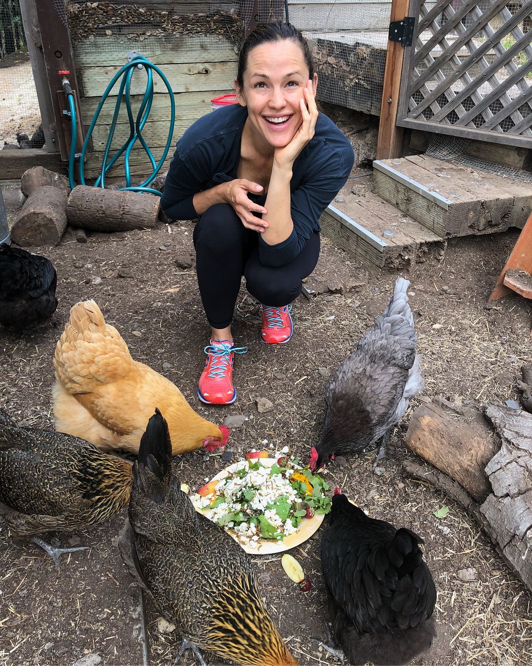 Garner has raised a coop of chickens in her backyard for many years. In July 2018, Garner even celebrated their “hatch day” with a homemade bug cake.
