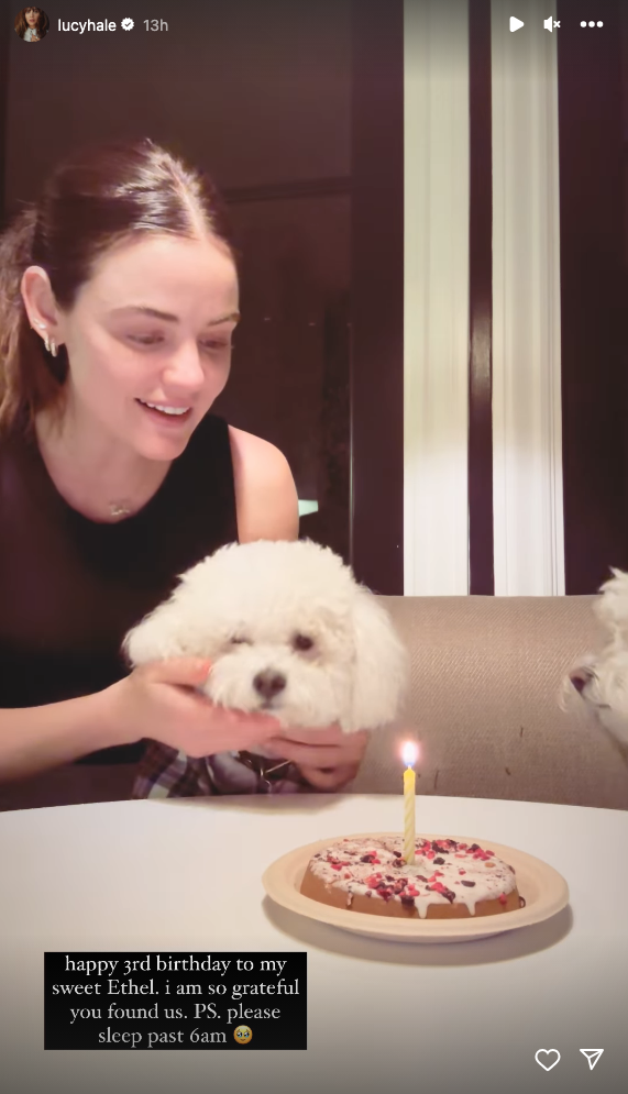 Amanda Seyfried also loves doting on her pooch, Finn. To commemorate his special day in September 2022, she had a custom cake made of his face.