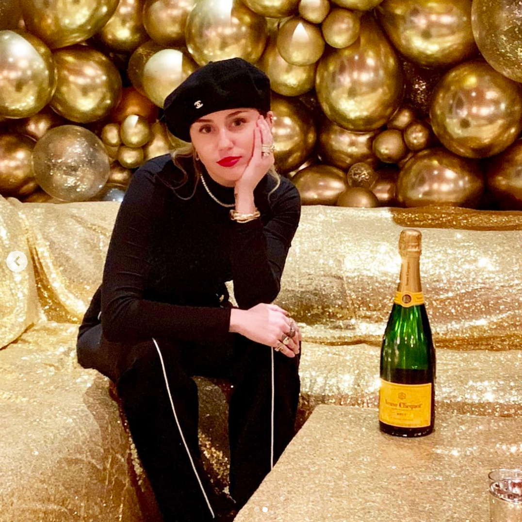 The singer, 26, shared photos on Instagram on Monday, December 31, showing her wearing an all-black outfit along with a matching beret as she stood on a snow-covered path and then posed with a bottle of champagne as she sat on a gold-draped sofa and by a stone fireplace decorated with 2019 spelled out with balloons.