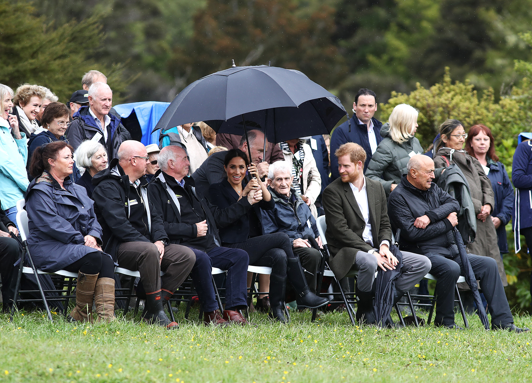 The Duke and Duchess of Sussex, who landed in Wellington on Sunday, October 28, also participated in a wellie wanging competition, in which people throw a Wellington boot as far as possible.