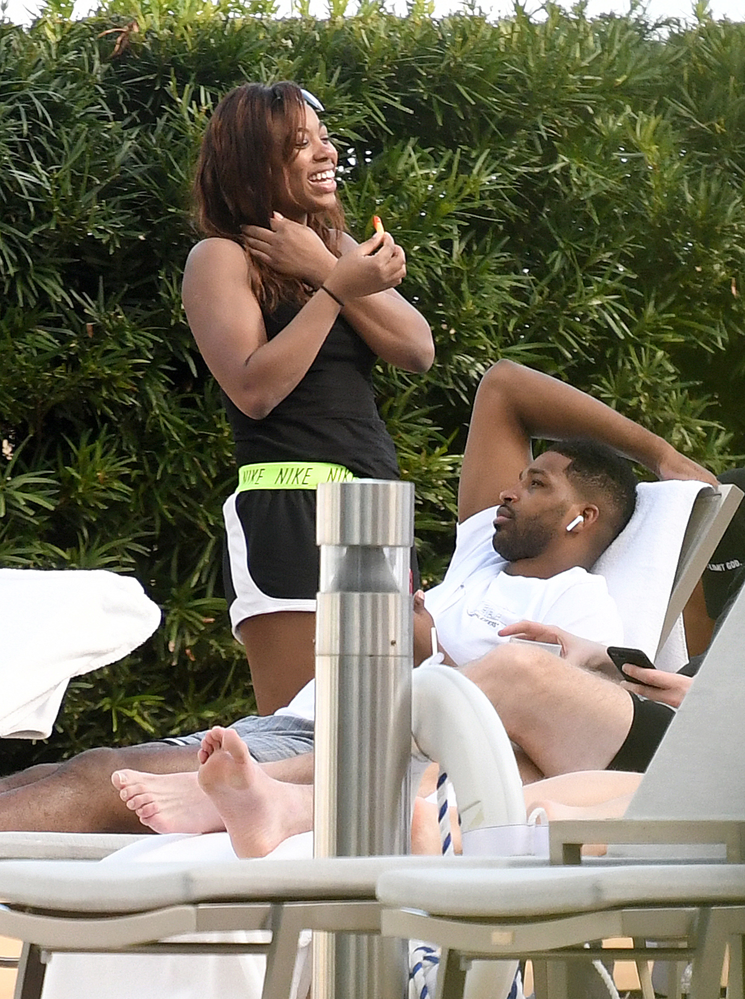 Scroll to see more photos from Thompson’s poolside hang.