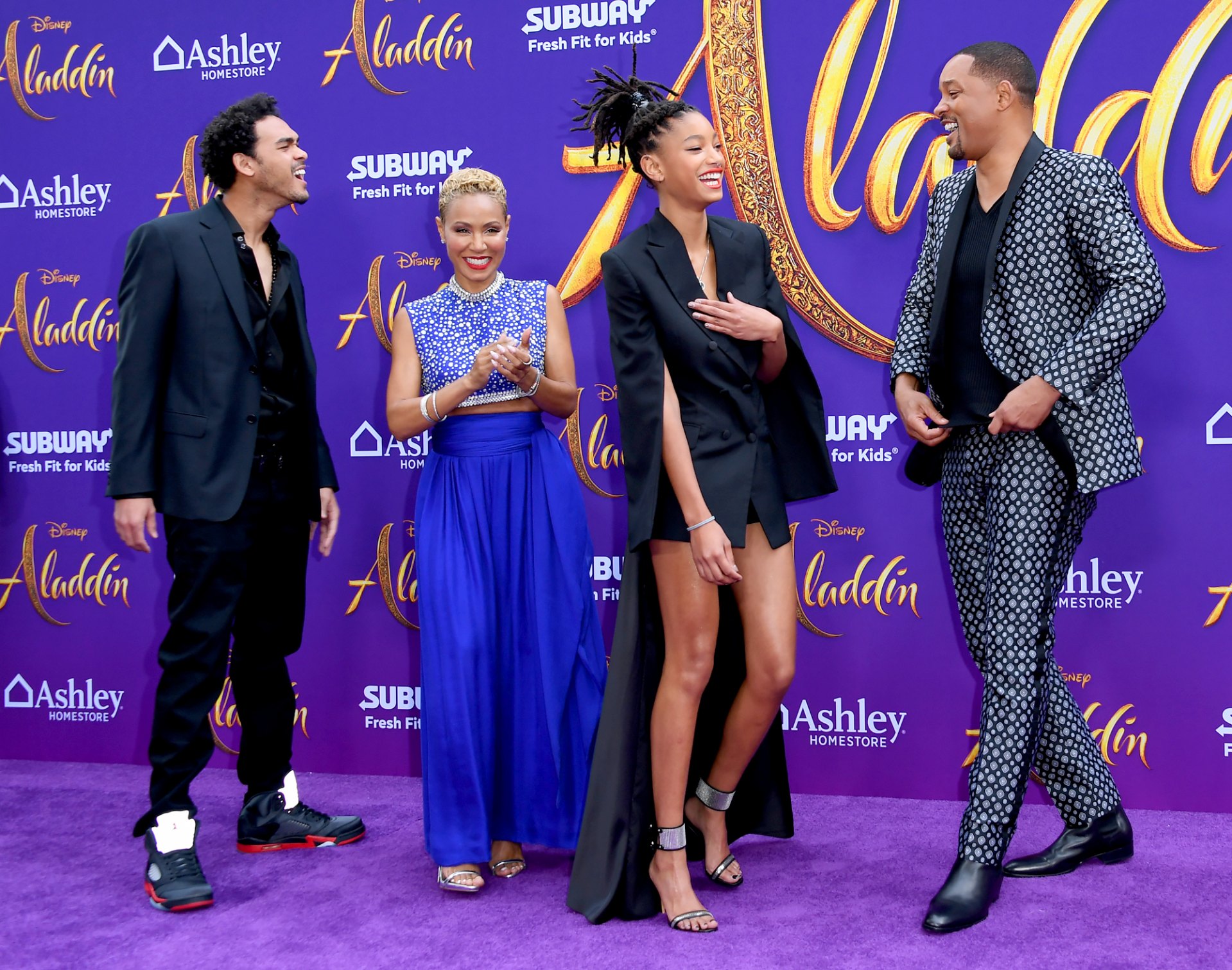 The Smiths take the (magic) carpet! Will Smith beamed at the world premiere of Disney’s Aladdin with his wife, Jada Pinkett Smith, and kids Trey, Jaden and Willow on Tuesday, May 21.