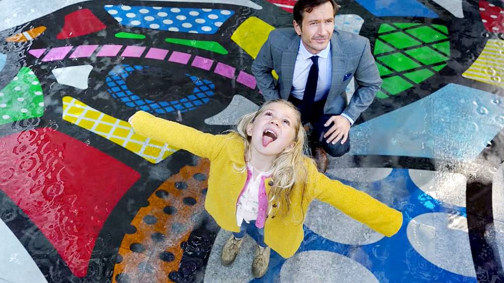 In the ad, a couple walking a dog, a father-daughter duo and a group of friends all marvel at the bright, beautiful designs created on everything from umbrellas to cars to buildings. The storm transforms an entire city into the art.