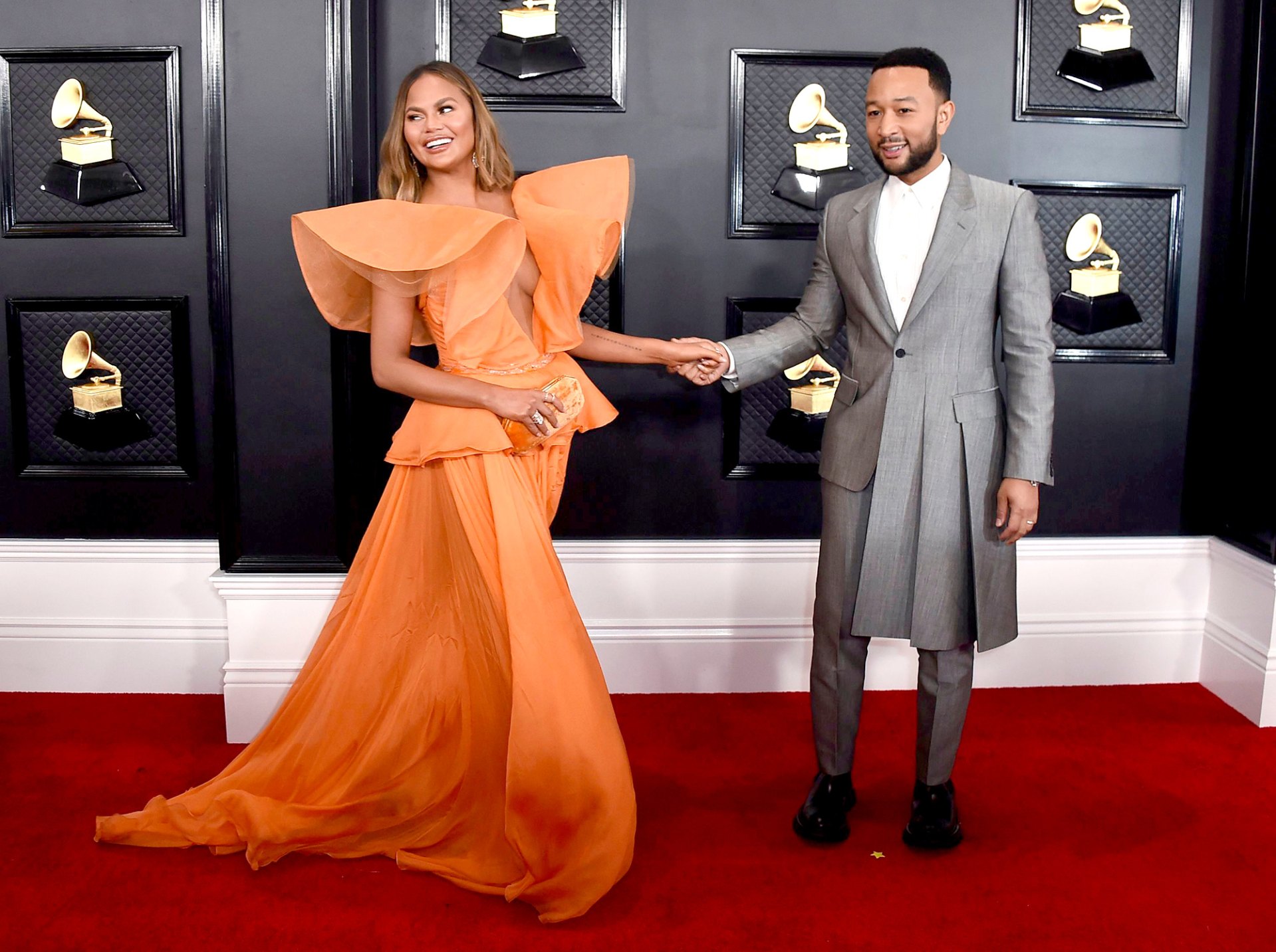 Gwen Stefani and Blake Shelton also caused a buzz on the red carpet. The Voice coaches were all smiles as they wore opposing colors, with Stefani in a short white dress and Shelton in an all-black suit. They later performed their new duet, “Nobody But You,” for the first time at Sunday’s event. The Oklahoma native’s song “God’s Country” was nominated for Best Country Solo Performance, but it went to Willie Nelson’s “Ride Me Back Home.”