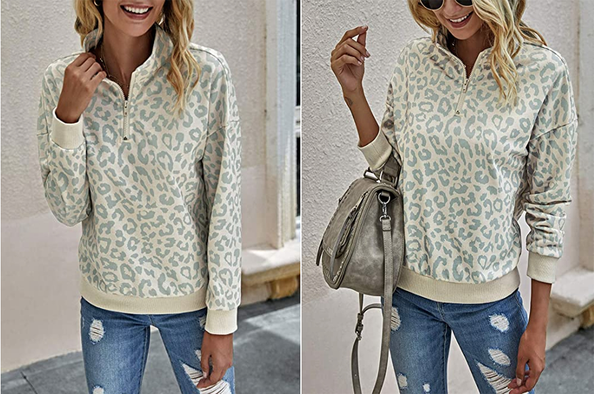 You can get away with wearing a sweatshirt out if it’s stylish enough and matches the vibe you’re going for. A perfect example of that is this leopard print half zip from BTFBM! It’s as comfortable as your favorite sweatshirt, but it definitely has a leg up in the style department.