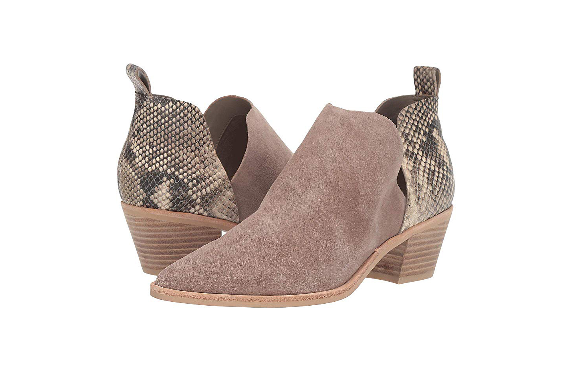 These slip-on DV booties have a pointed toe and a 1 ¾-inch stacked block heel, making them a snap to dress up for work, a romantic date or a night spent dancing with friends. On the inside is a cushioned insole and a soft lining, so they truly are just as beautiful on the inside as they are on the outside!