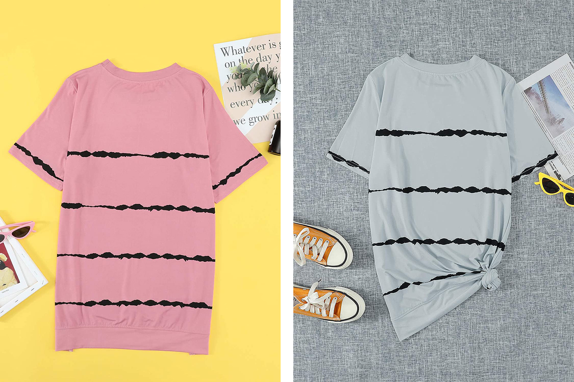 Another thing we love about this tee is that you can do more with it than just wear it over a pair of jeans or denim shorts. You can tuck the longer hem into a pair of paper-bag shorts or even a skirt. You could also let it hang loose over a pair of leggings and still feel covered up. These few options are only just the beginning; you’ll soon be pairing this tee with just about everything in your closet!