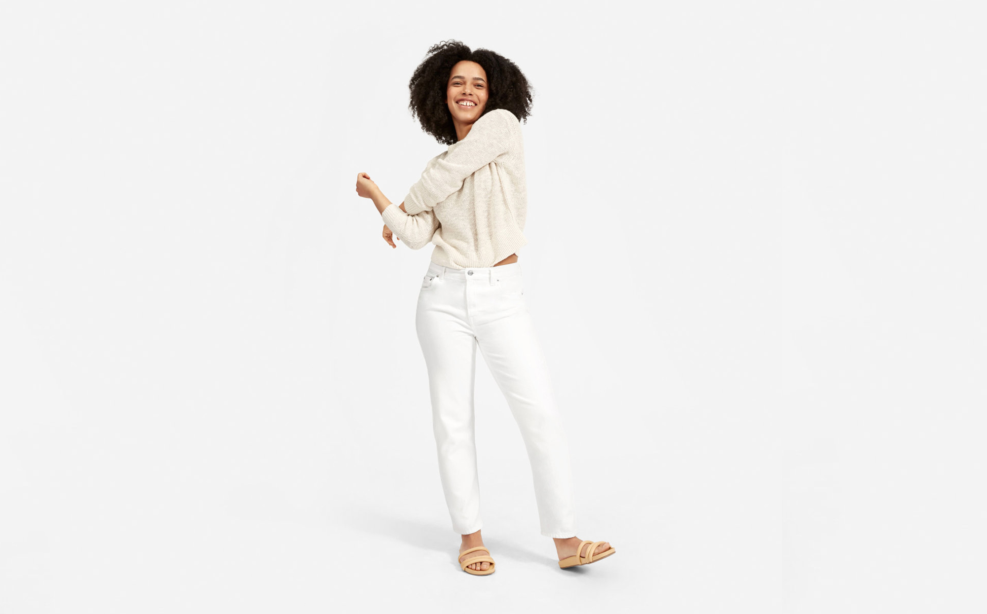 In terms of why this denim drop is such a game-changer? Well, that’s easy. It’s Everlane’s lightest jean yet. The loosely woven denim features less yarn per inch and also includes an airy softness.