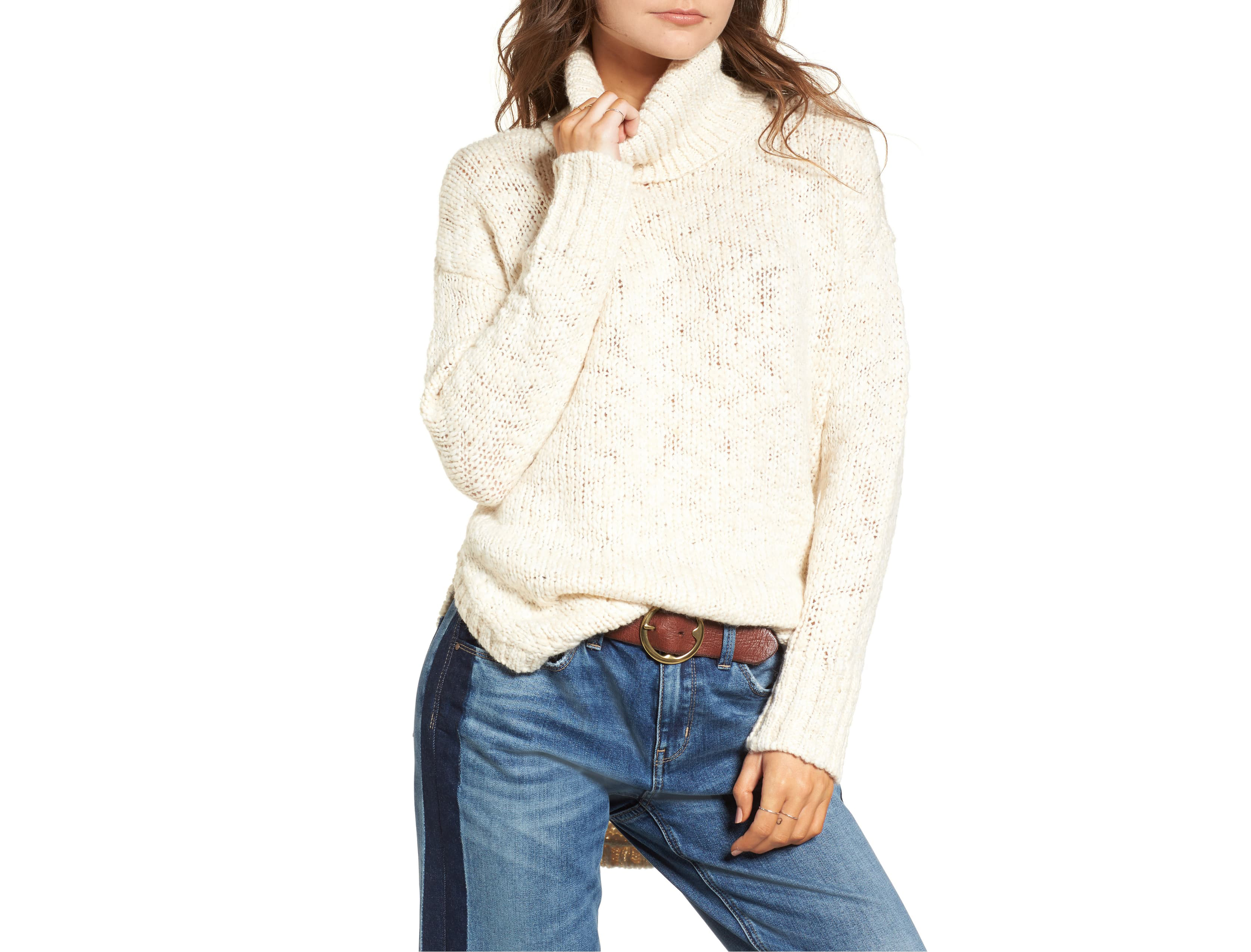 Though it’s hard to narrow it down, it’s safe to say that one of our favorite sweater styles is the turtleneck. We love the cozy and comfortable feel they maintain, all while looking completely chic at the same time. The comeback of the turtleneck is one of the best trends in recent memory, and we’re ready to rock this look all season long. With that in mind, when we saw this sweater from Nordstrom that’s not only fall-friendly but on sale too, we knew we had to pick it up ASAP!