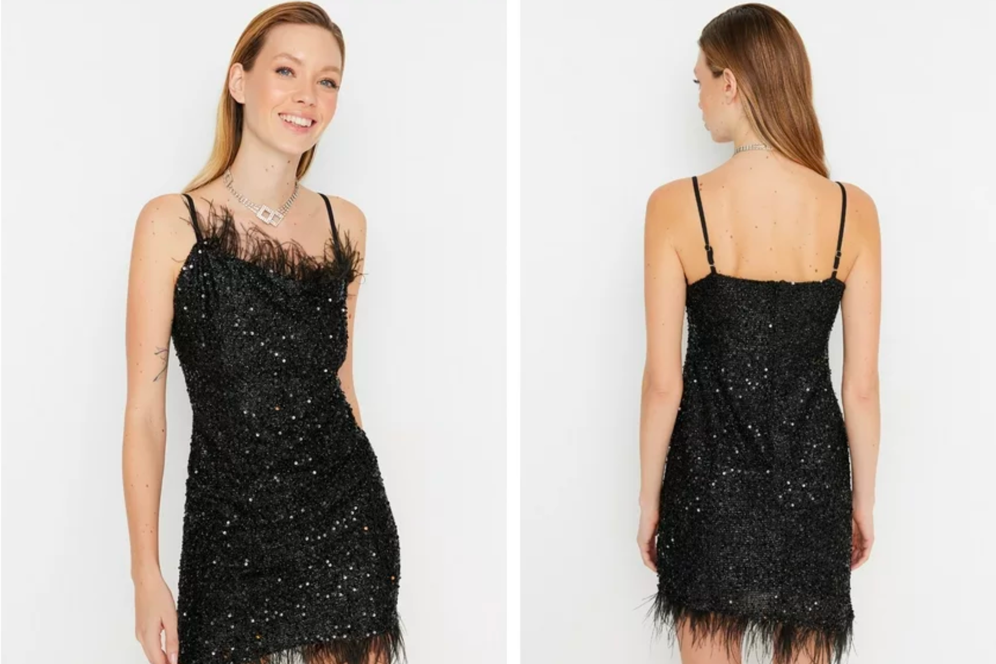 The Trendyol Mini Bodycon Knit Dress is just $16 – less than $20! – and it looks like a great look you might get right from the rack of your favorite department store. This glittering fitted mini dress has a bodycon fit with sparkling sequins and a fun frayed collar and trim. It looks much more expensive than it actually is, that’s for sure.