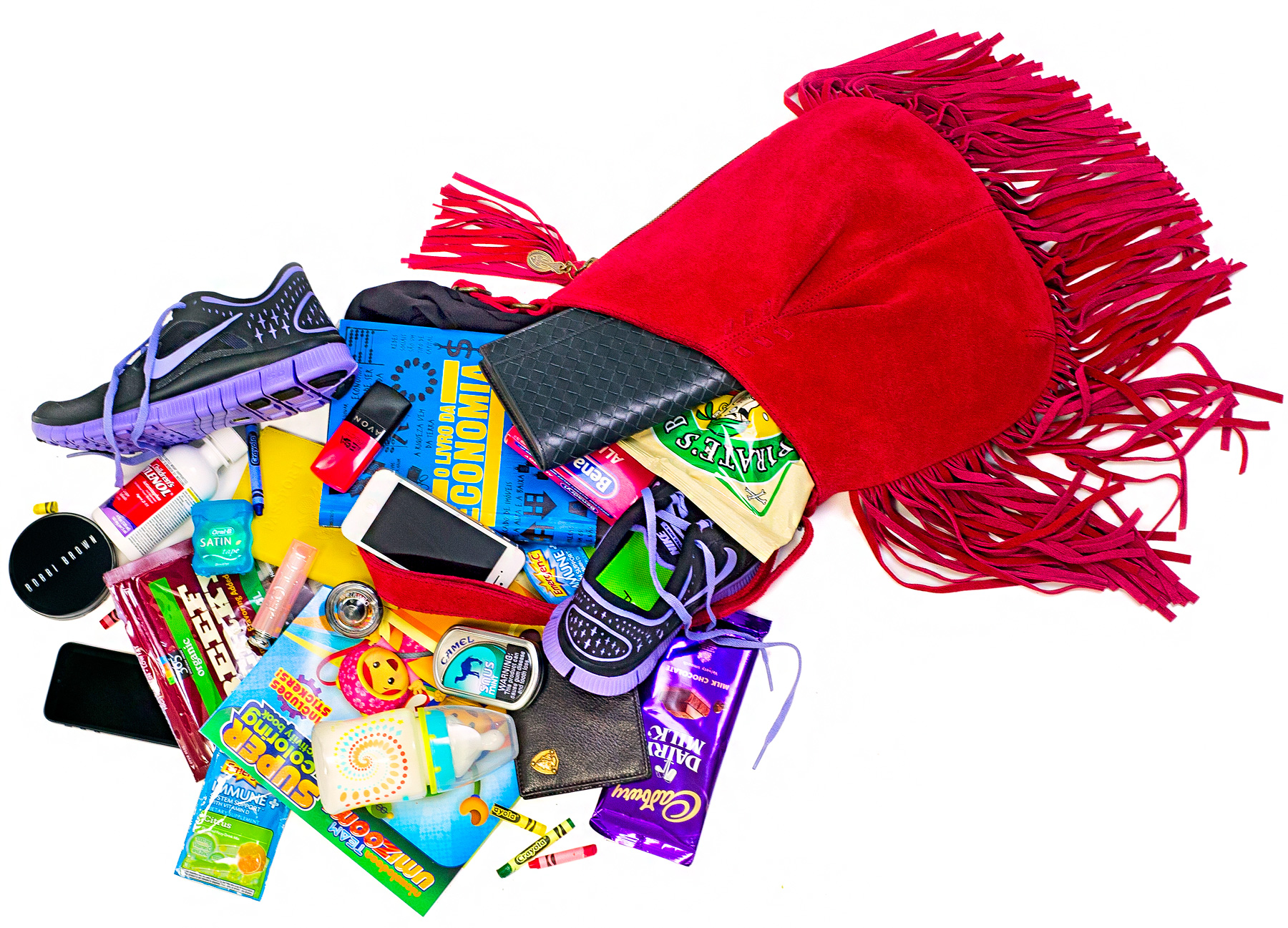 Ola, sunshine! “My passport case is yellow, to remind me of Brazil,” says Matthew McConaughey‘s missus, Camila Alves, 30, mom to Levi, 5, Vida, 3, and Livingston, 9 months. “It’s the color of our flag!” What else does the Muxo bag designer (who is debuting her new collection September 13 at 7 P.M. on QVC) keep handy?