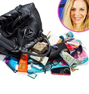 Among the other essentials: thinkThin protein bars, a travel toothbrush and an iPhone with a rubber bumper — “because I always drop it!” she says.