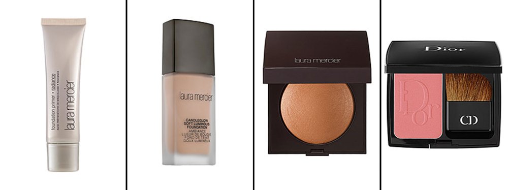 After prepping her skin with Kate Somerville Goat Milk Moisturizing Cream and Goat Milk De-Puffing Eye Balm, Streicher began with Laura Mercier Primer in Radiance (below, far left, $36, sephora.com) — but only in the T-zone “to give her a bit of extra shine,” the L.A.-based makeup artist said. Next, she used the brand’s new Candleglow Soft Luminous Foundation in Linen (below, near left, $48, sephora.com) to give the Into the Woods actress an all-over soft, highlighted effect.