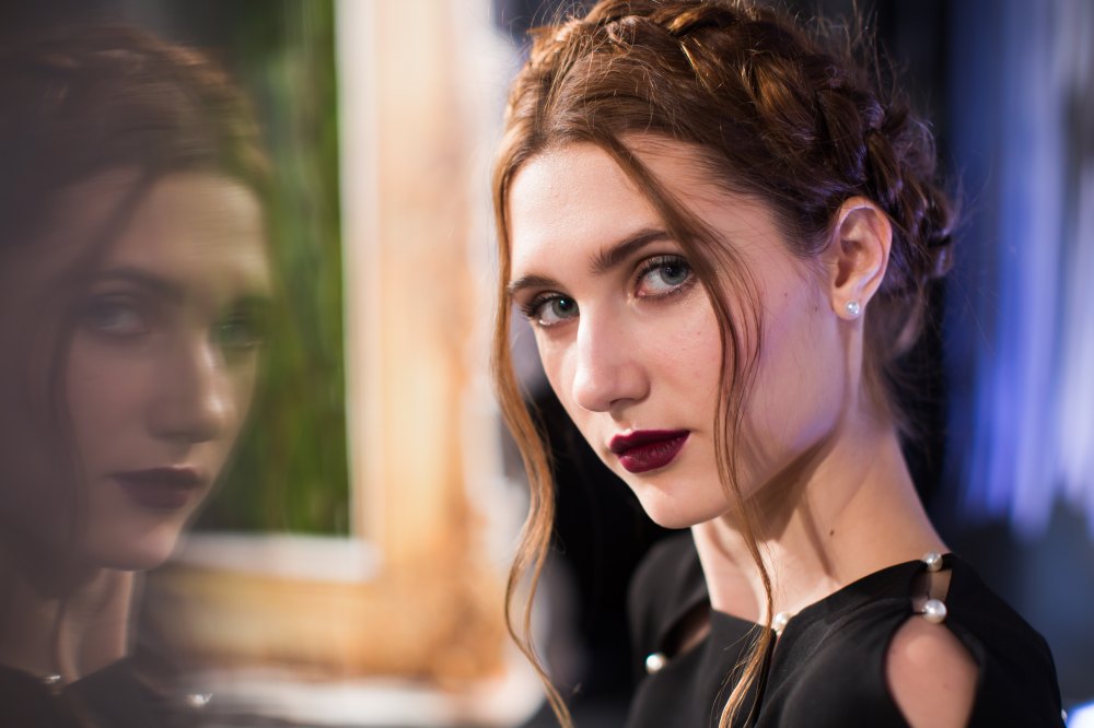After chatting with Moore and Bendet, we also came away with more must-haves from the models: The romantic braided updos by Justine Marjan using TRESsemmé and rich burgundy lips painted with Maybelline New York Color Sensational The Loaded Bolds in Midnight Merlot will also be on our fall wish list.