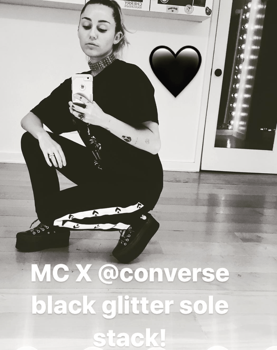Whether you’re a high tops or low tops kind of gal, no one can deny the enduring cool of a pair of Chuck Taylors. And now it appears as though the cult-favorite sneaker will be getting a seriously cool update courtesy of Miley Cyrus. We were first tipped off about the collection when the Malibu singer took to Instagram in November 2017 to share some behind-the-scenes snaps of her glittery high top, low top and platform designs. She upped the ante on Sunday, February 11, when she shared some additional pics of herself modeling the forthcoming kicks on social media. A launch date for the collaboration has not been confirmed, but Cyrus told her followers that “MC x Converse” is “coming soon.” While we anxiously await its arrival, keep scrolling to see all the designs Cryrus has shared a sneak peek of so far!